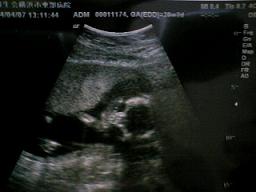 内診で子宮頚管を測る時にポコッと動いたんだけど、そのときに赤ちゃんが動いたのをモニタで確認。
